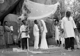 A work of performance and photography, 1972 offers an archive of images and text documenting the imagined interracial marriage of an Israeli woman and a Zimbabwean man in rural Zimbabwe in 1972. In reality, 1972 was a tumultuous year in Zimbabwe, as a guerrilla-style war of independence escalated and the intermingling of the races was challenged and driven underground by social pressures and government intervention. Together, the photographs and cards, rendered in a style drawn from the past, attest to an intimate personal and domestic narrative, a story “both believable and unbelievable at the same time,” says Monosov. The black and white prints also serve as photographic self-portraits, as in the course of their creation the artists married, lived together, and built a house in Zimbabwe.